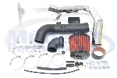 This intake runs from the turbo, around and in front of the battery, then down into the wheel well. The filter sits low enough to pull cooler air that is not heated by the engine, for maximum power. This intake was tested on a relatively stock SRT-4 and gained a peak of 8 horsepower and 13 lbs of torque. At 4400rpm our car gained 12 horsepower and 14 lbs of torque at the wheels!
