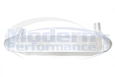 If you are ready to step up to a maximum size intercooler, the AGP Race Intercooler is here! This unit has a giant core measuring 24.0 x 12.0 x 4.5! The end tanks are cast one piece units that are shaped for maximum flow to the entire core. It is designed to work with the stock charge piping couplers and will require trimming to the back side of the front bumper to clear the oversize core (1/2" in two places). This is for a serious, big turbo, big power setup.