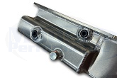 This pan has two threaded ports on the back of the oil pan for ease of connecting a turbo with feed and return, or if you want to run a pump with external oil cooler.