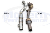 While other performance downpipes may appear to be less expensive at first glance, this is often due to the fact that they are not complete assemblies. The MPx 3.5" O2 Housing / Downpipe is a single piece, complete replacement. In addition to replacing both catalytic convertors, there are no ball and socket flanges, which can leak or fail over time.