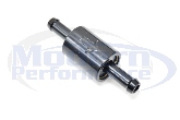 To help assist the PCV from coming apart from higher boost levels than it was designed for, we have designed an inexpensive billet 8mm check valve to be put between the PCV valve and intake manifold. If you are running a catch can, this valve is to be installed between the catch can and intake manifold. The MPx check valve has been pressure tested up to 125psi and opens at a mere 1inHg of vacuum. This valve comes in an anodized black and has a directional arrow to ensure proper direction of installation (arrow points towards intake manifold source, points away from PCV valve).