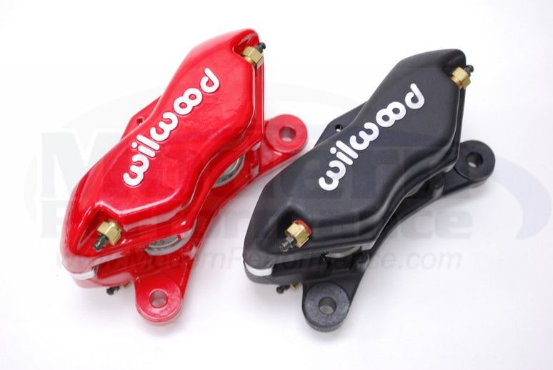 Wilwood's big brake kits start off with a 12 inch vented rotor, with a special hat that mates to it to make it a direct fit for your car. Then, they take their FOUR piston caliper, huge vented rotors, stainless steel brake lines and their specially formulated brake pads to make your car stop better, but also look awesome ! The nice thing about these kits is that they are meant to be a complete, direct bolt on kit and are priced FAR below other big brake kits ! One important fact about this brake kit, is not only does it utilize a larger four piston caliper than the OEM braking system, but the rotor and top hat weigh nearly 6-8 lbs less than the OEM rotor per CORNER. That means a difference of nearly 12-14 lbs of rotating mass, which is huge. When you can save that much weight of rotating mass, your engine will respond quicker and the car will be more fun to drive!